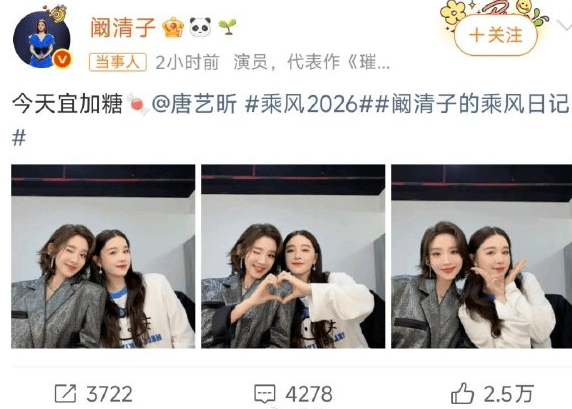 2026Äê4ÔÂ5ÈÕ£¬ÑÝÔ±ãÛÇå×ÓÔÚ¡¶³Ë·ç2026¡·½ÚÄ¿Â¼ÖÆÆÚ¼ä£¬Í¨¹ý΢²©·¢²¼ÓëÌÆÒÕ꿵ÄÇ×ÃܺÏÕÕ²¢ÅäÎÄ¡°½ñÌìÒ˼ÓÌÇ¡±£¬ÌÆÒÕê¿Ë漴ת·¢»ØÓ¦¡°³Ë·çµÄµÚÒ»¸ö´óÒ¹£¬½ñÌì¼ÌÐø¼ÓÓÍ¡±£¬ÒÔ¡°¼ÓÌÇ×éºÏ¡±µÄůÐÄ»¥¶¯Òý·¢È«ÍøÈÈÒé¡£